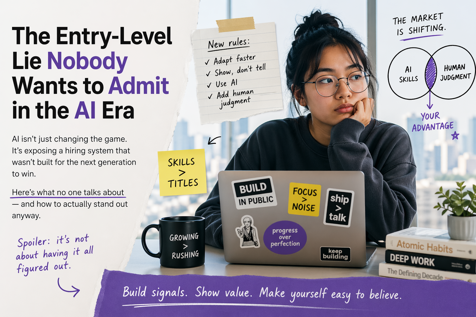 For years, companies wanted “entry-level” people with three years of experience, perfect communication, polished portfolios, startup speed, enterprise maturity, and somehow the confidence of a 35-year-old operator. Absurd. Now add AI on top, and suddenly the bar moved again.
